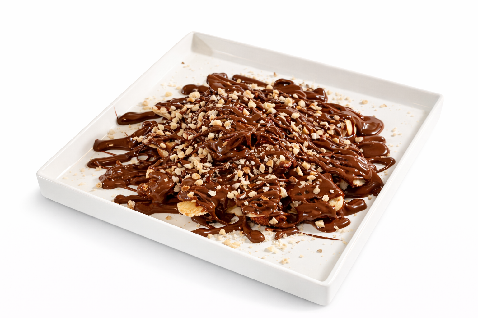 Dip sos sütlü çikolata, üzerine muz, çilek, toz fındık, karamel çikolata, üzerine lotus biscuit